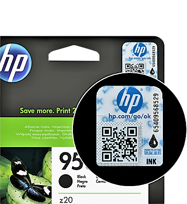 I HP's oversigt kan du hurtigt se, om der bør være et sikkerhedsmærke på produktet. Mangler mærket, kan æsken indeholde et kopiprodukt.