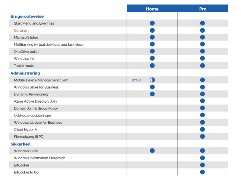 *Windows Hello kræver specielt biometrisk hardware. **Windows Information Protection kræver enten Mobile Device Management (MDM) eller System Center Configuration Manager til administrering af indstillinger. † Sælges separat. ‡Tilgængelig på udvalgte markeder. Funktionalitet og apps kan variere afhængigt af marked og enhed.; *** Hardware-afhængigt Pen tilbehør sælges muligvis separat ****Windows Ink kræver tablet eller PC med touch funktion. Pen tilbehør sælges muligvis separaty. ***** Cortana er tilgængeligt på udvalgte markeder; kan variere afhængigt af region og enhed.