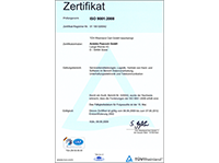 ISO 9001:2008 Prüfungsnorm Zertifikat Laden Sie hier das entsprechende Zertifikat vom TÜV Rheinland: - hier in Deutsch herunter - hier in Englisch herunter |