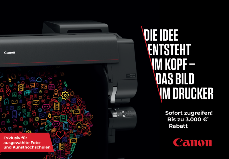 Ab sofort gewähren wir Ihnen bis zum 31. Dezember 2026, verschiedene Rabattbeträge auf die imagePROGRAF PRO-Serie für Kunst und Foto-Hochschulen. So können Schüler und Studenten schon frühzeitig lernen mit Canon-Plottern zu arbeiten. Eine lohnende Investition in die Zukunft.