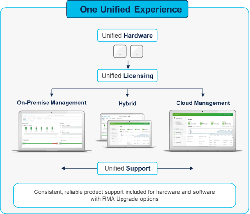 Hallitse langatonta lähiverkkoasi pilvestä, paikallisesti tai hybridinä, yhdellä yhtenäisellä lisenssi- ja tukisopimuksella.